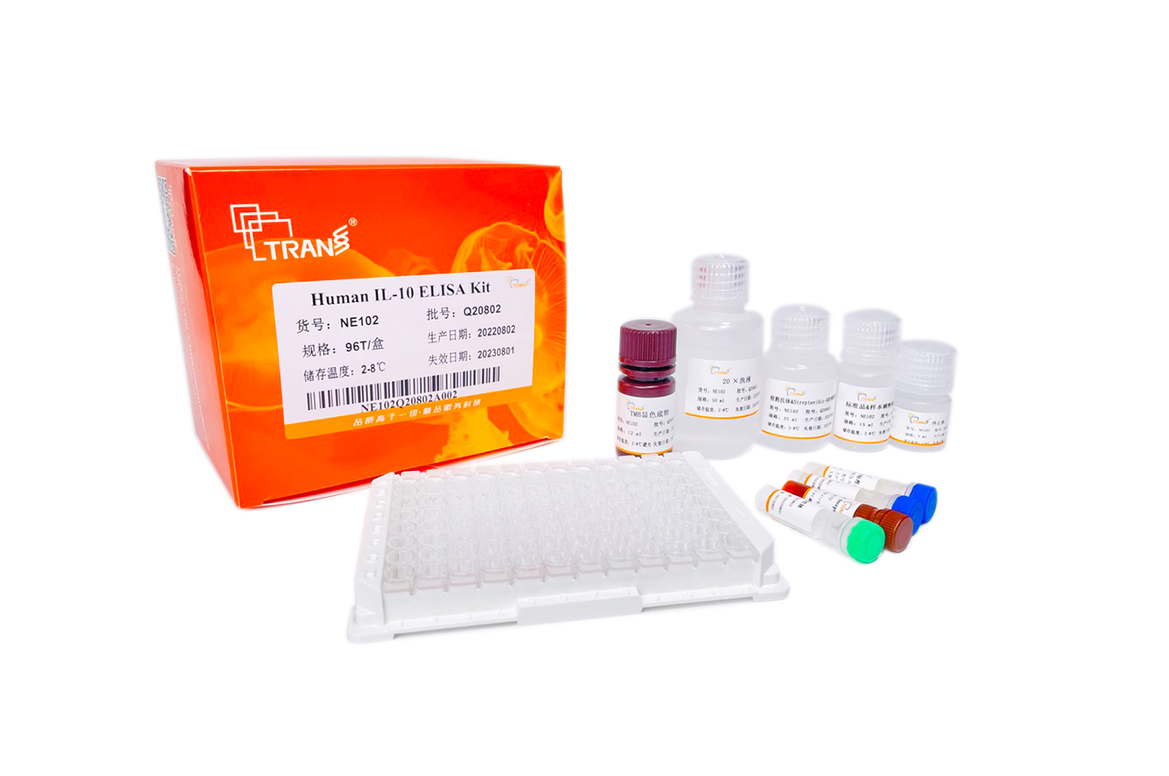 本試劑盒采用雙抗體夾心ELISA法定量測定人血清、血漿和細胞培養(yǎng)上清中的IL-10含量。本試劑盒采用高親和力的抗人IL-10抗體預(yù)包被酶標(biāo)板,將標(biāo)準品/待測樣本加入微板孔中,經(jīng)過孵育后樣本中存在的IL-10會與酶標(biāo)板上的預(yù)包被抗體特異性結(jié)合。洗滌去除未結(jié)合物后,將生物素標(biāo)記的抗人IL-10檢測抗體加入微板孔中,再次孵育后檢測抗體會與錨定在酶標(biāo)板上的IL-10特異性結(jié)合。隨后,將辣根過氧化物酶標(biāo)記的鏈霉親和素(Streptavidin-HRP)加至微孔板中并孵育,通過檢測抗體上的生物素和鏈霉親和素發(fā)生的高強度非共價結(jié)合,形成“包被抗體-人IL-10蛋白-檢測抗體-Streptavidin-HRP”免疫復(fù)合物。再次洗滌后,將顯色底物TMB加至微板孔中,HRP會催化TMB底物生成藍色產(chǎn)物,顏色反應(yīng)的深淺將與樣本中IL-10的濃度成正相關(guān)。而后加入終止液終止反應(yīng),在450 nm波長(參考波長570 - 630 nm)處測定吸光度值。通過繪制標(biāo)準曲線,由樣本吸光度值可計算出樣本中所含IL-10濃度。本試劑盒特異性強、檢測靈敏度高,同時操作更加便捷。