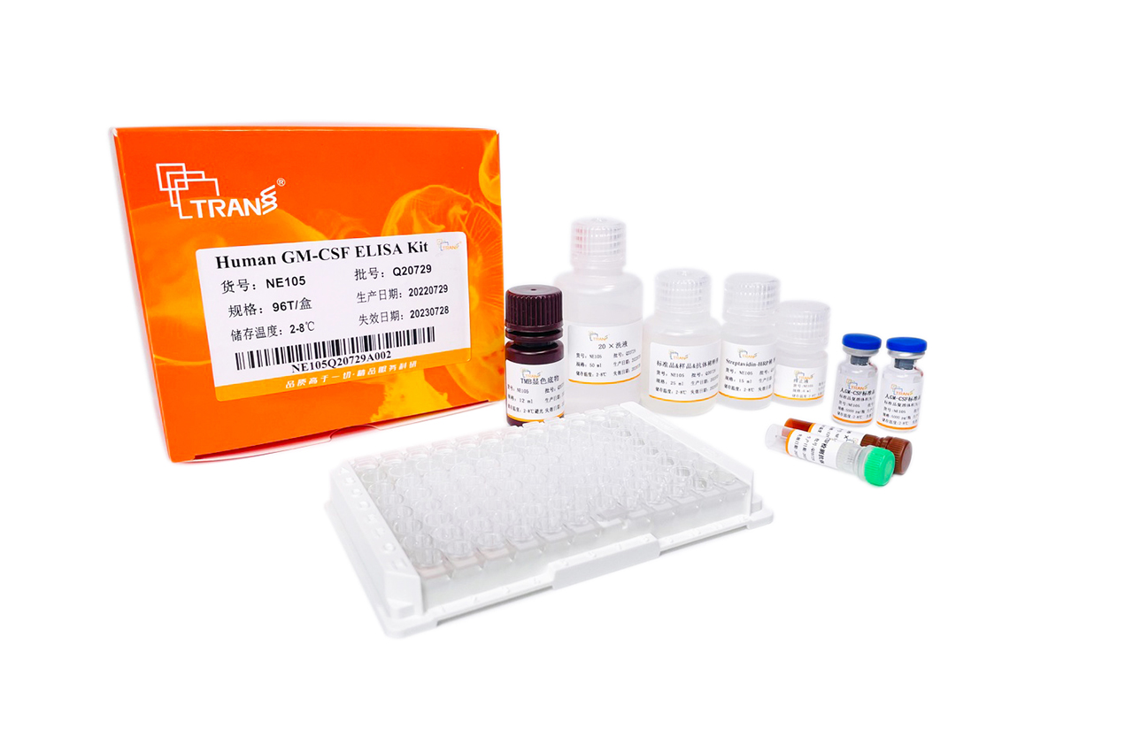 人粒細(xì)胞-巨噬細(xì)胞集落刺激因子,也稱GM-CSF、CSF-2,是由多種活化的免疫細(xì)胞、間充質(zhì)細(xì)胞和上皮細(xì)胞等分泌的一種單體糖蛋白。成熟的人GM-CSF與小鼠和大鼠GM-CSF的氨基酸序列同源性分別為54%和63%。GM-CSF具有多種生物學(xué)功能,如能刺激CD34+干細(xì)胞前體分化為單核細(xì)胞、中性粒細(xì)胞和嗜酸性粒細(xì)胞;可以做為中性粒細(xì)胞和樹突狀細(xì)胞的一種趨化因子。GM-CSF還參與Th1、Th17 細(xì)胞介導(dǎo)的自身免疫反應(yīng),與樹突狀細(xì)胞、小膠質(zhì)細(xì)胞、肺泡巨噬細(xì)胞和嗜酸性粒細(xì)胞等的炎癥激活有關(guān)。此外,GM-CSF通過免疫依賴和非依賴的途徑調(diào)控腫瘤細(xì)胞的增殖、侵襲和轉(zhuǎn)移。