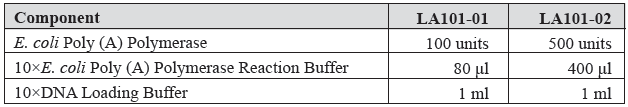 本產(chǎn)品由重組E. coli Poly (A) Polymerase 基因的載體,在大腸桿菌中經(jīng)誘導表達、純化而成,分子量為50.2 kDa。E. coli Poly (A) Polymerase 反應時不依賴模板的存在,催化由ATP 轉(zhuǎn)化的AMP添加到RNA的3′端,即給RNA加Poly(A) 尾。