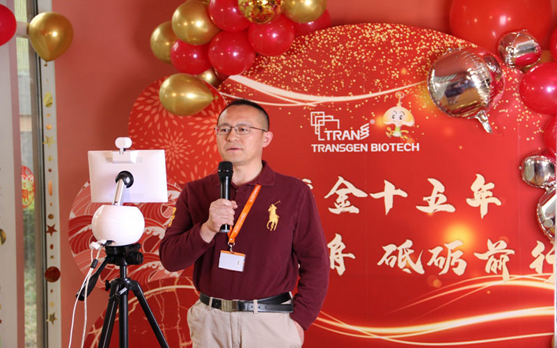 慶典在總裁辛文博士精彩而真誠(chéng)的致辭中拉開帷幕。因疫情原因,我們首次采用現(xiàn)場(chǎng)直播的方式,向全體員工及合作伙伴發(fā)表講話。辛文博士首先對(duì)為全式金做出貢獻(xiàn)的所有朋友表示感謝。十五年里全式金一直秉承著品質(zhì)高于一切,精品服務(wù)科研的理念向?qū)崿F(xiàn)生物試劑國(guó)產(chǎn)化的夢(mèng)想奔赴,正是夢(mèng)想推動(dòng)我們翻山過水、克服一切困難。2020年新冠疫情,更是讓我們意識(shí)到民族生物試劑國(guó)產(chǎn)化的重要性,更加堅(jiān)定了全式金人追逐夢(mèng)想的步伐。其次,辛文博士再次強(qiáng)調(diào)“品質(zhì)”與“服務(wù)”的重要性,它們就像飛機(jī)的機(jī)翼一樣,全式金人要銘記并時(shí)刻踐行。全式金的成就靠大家,未來希望大家陪伴全式金繼續(xù)奮斗,共創(chuàng)未來。