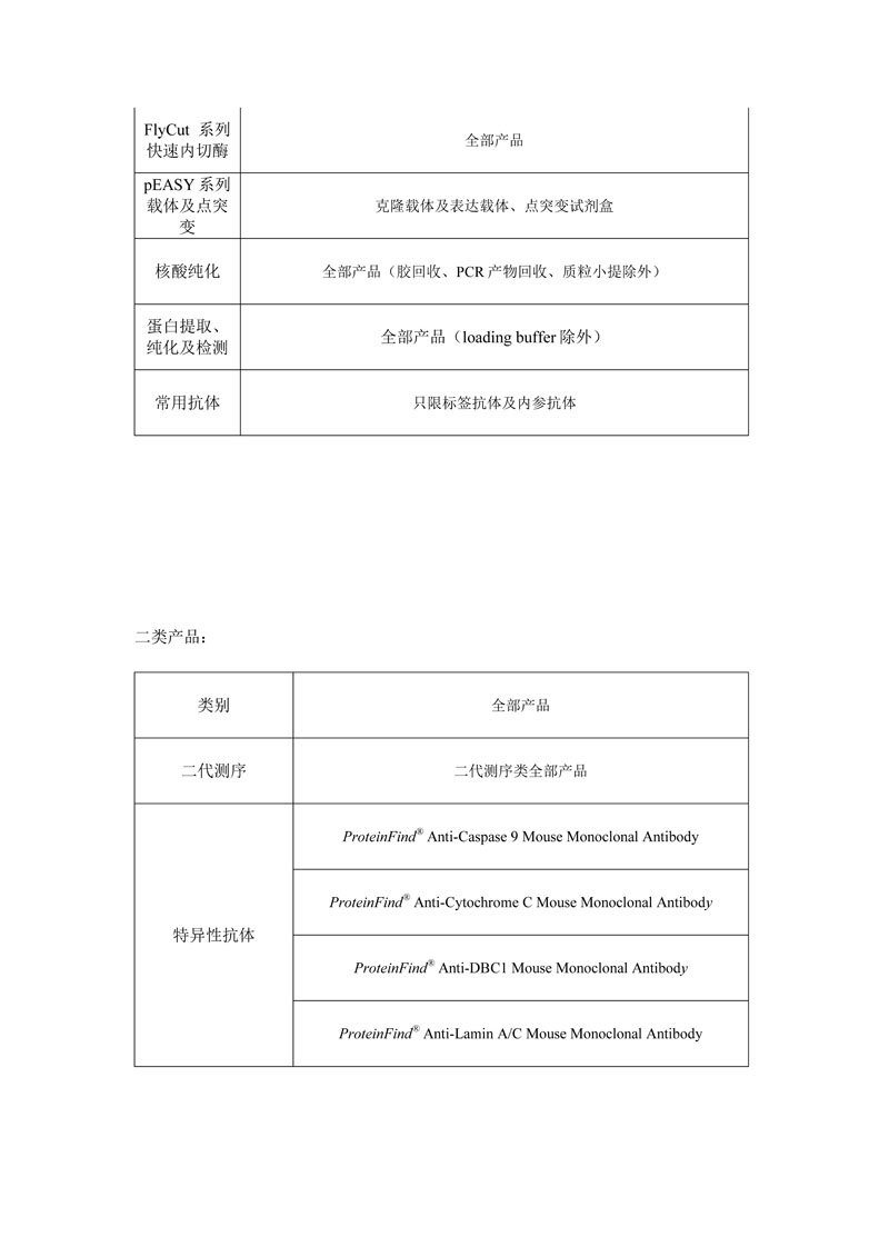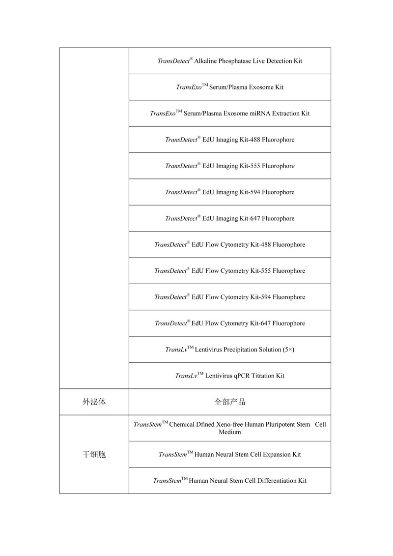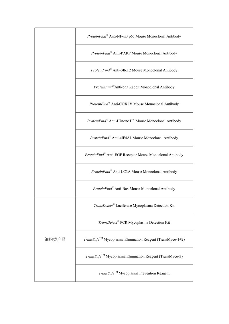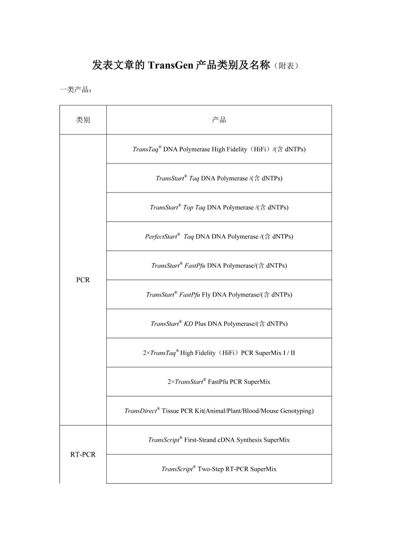 1.使用全式金生物部分產品(詳見附表),在國際刊物上發(fā)表文章(截止發(fā)送日期一年內的文章), 并注明使用產品所屬北京全式金生物技術有限公司(TransGen Biotech)的國內外科研人員均有權申請獎勵。