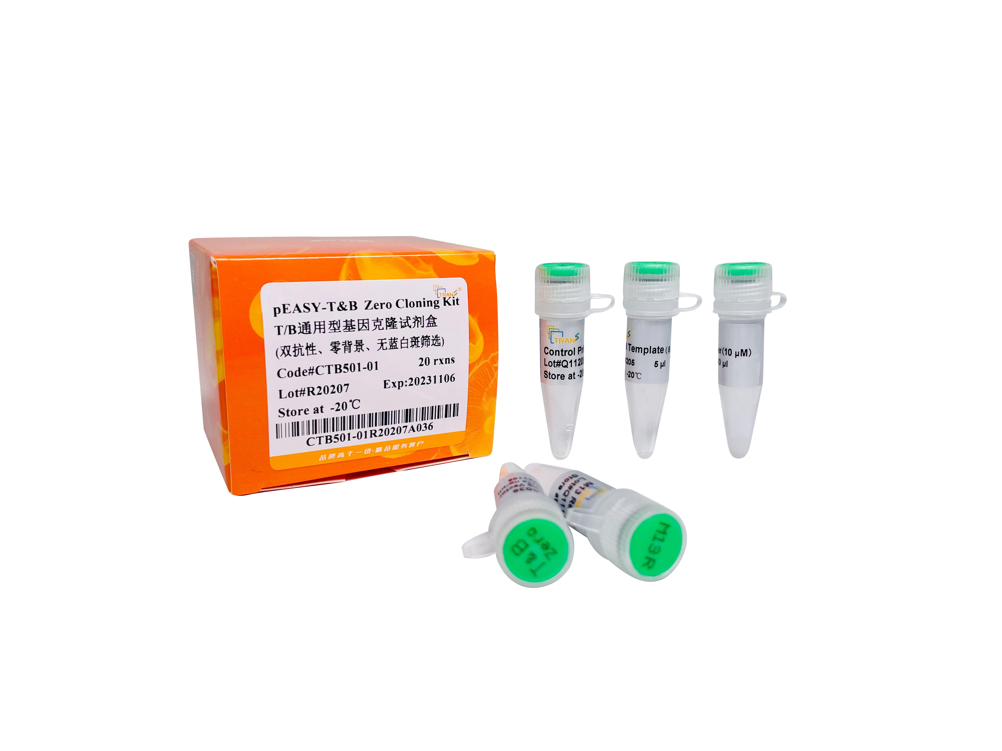 該載體通過自殺基因表達(dá)與否篩選陽性重組子。當(dāng)載體與片段連接成功時(shí),自殺基因無法正確表達(dá),包含重組子的細(xì)胞可以正常生長;當(dāng)載體與片段連接不成功時(shí),自殺基因正確表達(dá),包含載體的細(xì)胞無法生長,即“Zero”背景。本產(chǎn)品使用獨(dú)特的載體制備工藝,可以兼容TA克隆與平末端克隆。