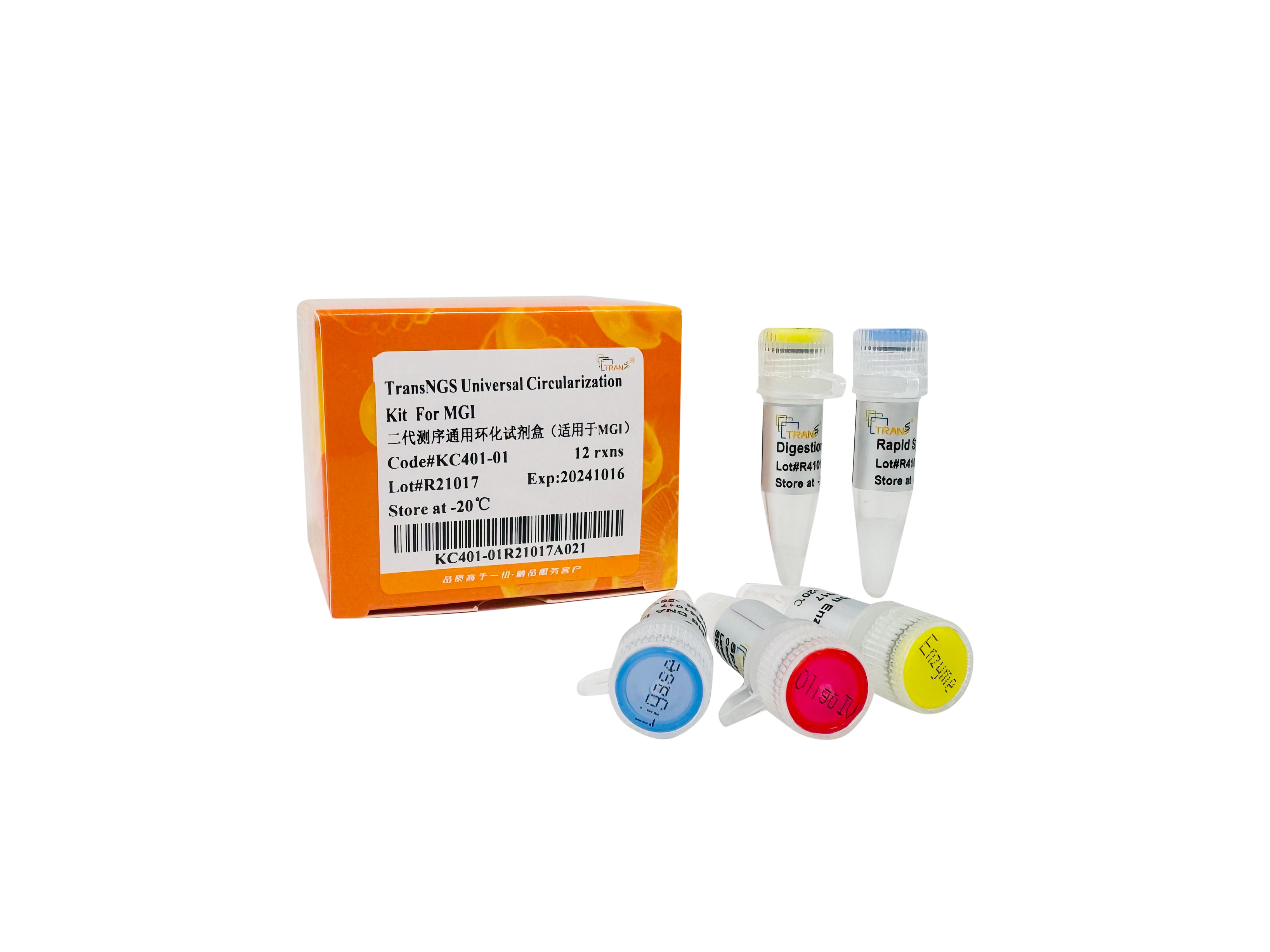 TransNGS? Universal Circularization Kit For MGI?是針對(duì)華大智造 (MGI) 高通量測(cè)序平臺(tái)開發(fā)的,以MGI平臺(tái)雙端barcode文庫(kù)、MGI平臺(tái)單端barcode文庫(kù)或經(jīng)文庫(kù)轉(zhuǎn)換的非MGI文庫(kù)的dsDNA為底物,將其高效快速地制備成環(huán)狀單鏈DNA文庫(kù),并用于MGI高通量測(cè)序平臺(tái)測(cè)序。試劑盒中提供的所有試劑都經(jīng)過(guò)嚴(yán)格的質(zhì)量控制和功能驗(yàn)證,最大程度上保證了文庫(kù)構(gòu)建的穩(wěn)定性和重復(fù)性。