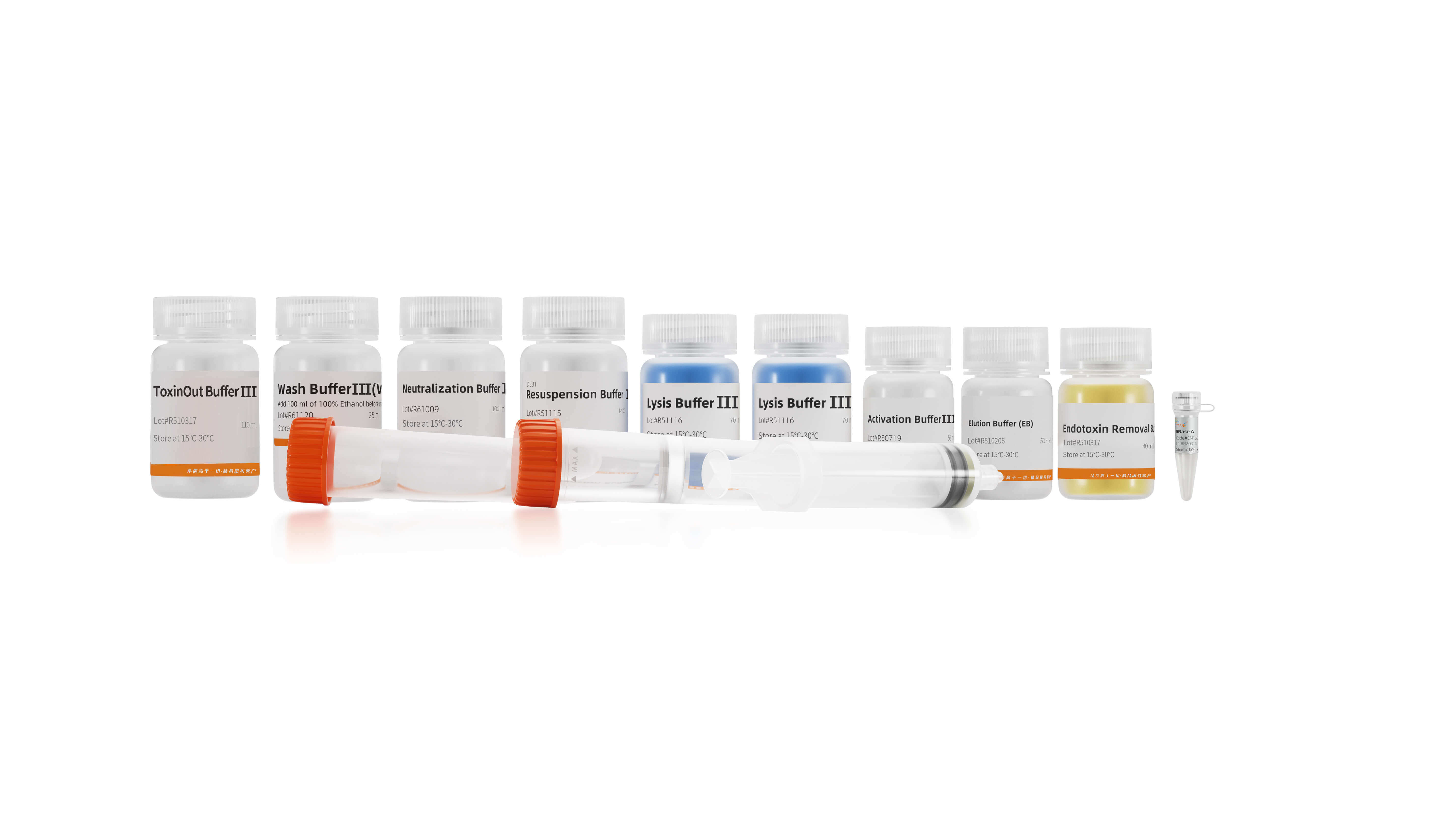 本產(chǎn)品為通用型柱法質(zhì)粒大提試劑盒。通過優(yōu)化的裂解體系對大腸桿菌細胞進行裂解使其高效釋放出質(zhì)粒DNA。經(jīng)硅膠膜離心柱特異地吸附DNA,可實現(xiàn)100-500 ml LB培養(yǎng)基制備的大腸桿菌菌體的一管式裂解中和,上清液體積小于50 ml。溶液含指示劑,通過溶液顏色的變化,指示裂解、中和是否完全,實現(xiàn)操作的可視化。全新內(nèi)毒素去除方案可使內(nèi)毒素水平低至0.001 EU/μg,使用本試劑盒提取的質(zhì)粒DNA適用于酶切、連接、轉(zhuǎn)化、測序和轉(zhuǎn)染等實驗。