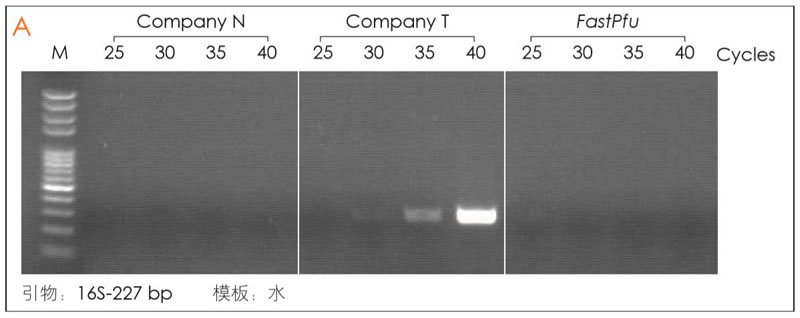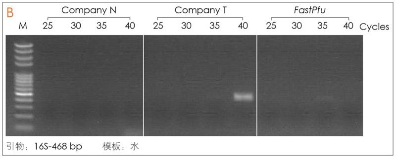 結(jié)果表明,FastPfu酶具有極低的大腸桿菌基因組DNA 殘留,擴增循環(huán)數(shù)為40時也無條帶擴增。