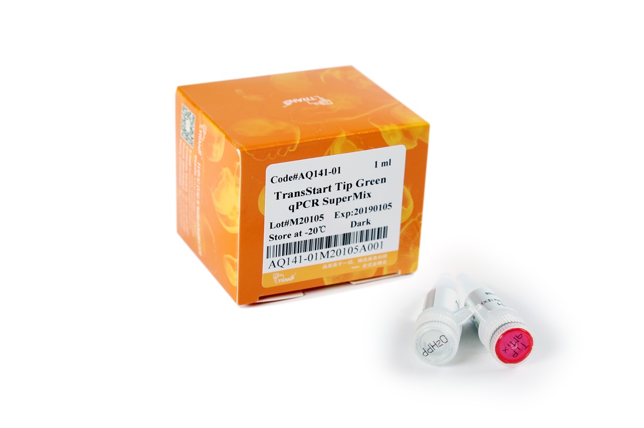 本產品包含全封閉法TransStart? TipTaq新型熱啟動酶( 利用三種蛋白封閉模板和引物,利用特殊的化學物質和DNA聚合酶結合,封閉DNA聚合酶活性 )、優(yōu)化的雙陽離子緩沖液、EvaGreen 熒光染料、dNTPs、PCR增強劑、PCR穩(wěn)定劑。本產品濃度為2×,使用時只需加入模板、引物、Passive Reference Dye ( 根據(jù)qPCR儀選擇 ) 和水,使其工作濃度為1×,即可進行反應。