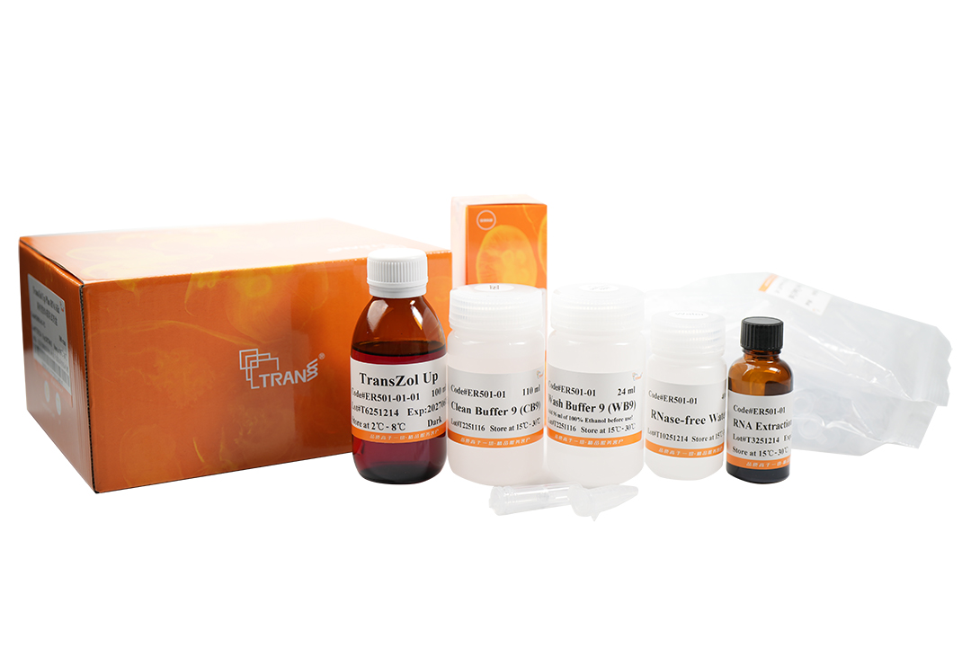 本試劑盒適用于從細(xì)胞和組織中提取總RNA,用TransZol Up裂解樣品,加入RNA Extraction Agent后,溶液分為無色水相和粉紅色有機相,RNA在水相中;用硅膠膜離心柱特異吸附水相中的RNA,與其它總RNA提取方法相比,既具有TransZol Up裂解能力強、提取量高,應(yīng)用范圍廣的優(yōu)點,又具有離心柱提取RNA純度高的優(yōu)點。