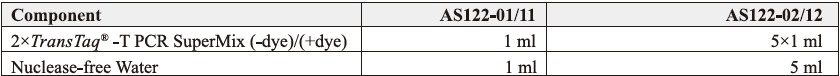 本產(chǎn)品含TransTaq?-T DNA Polymerase、dNTPs和優(yōu)化的反應(yīng)緩沖液,濃度為2×。DNA擴(kuò)增時(shí),只需加入模板,引物和水,使SuperMix溶液的濃度為1×即可進(jìn)行反應(yīng)。其擴(kuò)增產(chǎn)物3′端帶“A”堿基(加“A”效率和EasyTaq? DNA Polymerase相同),進(jìn)行PCR擴(kuò)增可以減少操作時(shí)間,避免因多步操作帶來的污染。具有高保真(保真性和EasyPfu DNA Polymerase相當(dāng)),高擴(kuò)增效率等優(yōu)點(diǎn)。2×TransTaq? -T PCR SuperMix(-dye)擴(kuò)增產(chǎn)物可直接克隆于pEASY? -T系列載體中。2×TransTaq?-T PCR SuperMix (+dye)擴(kuò)增產(chǎn)物可直接點(diǎn)樣電泳,如用于克隆時(shí),需純化去掉染料。